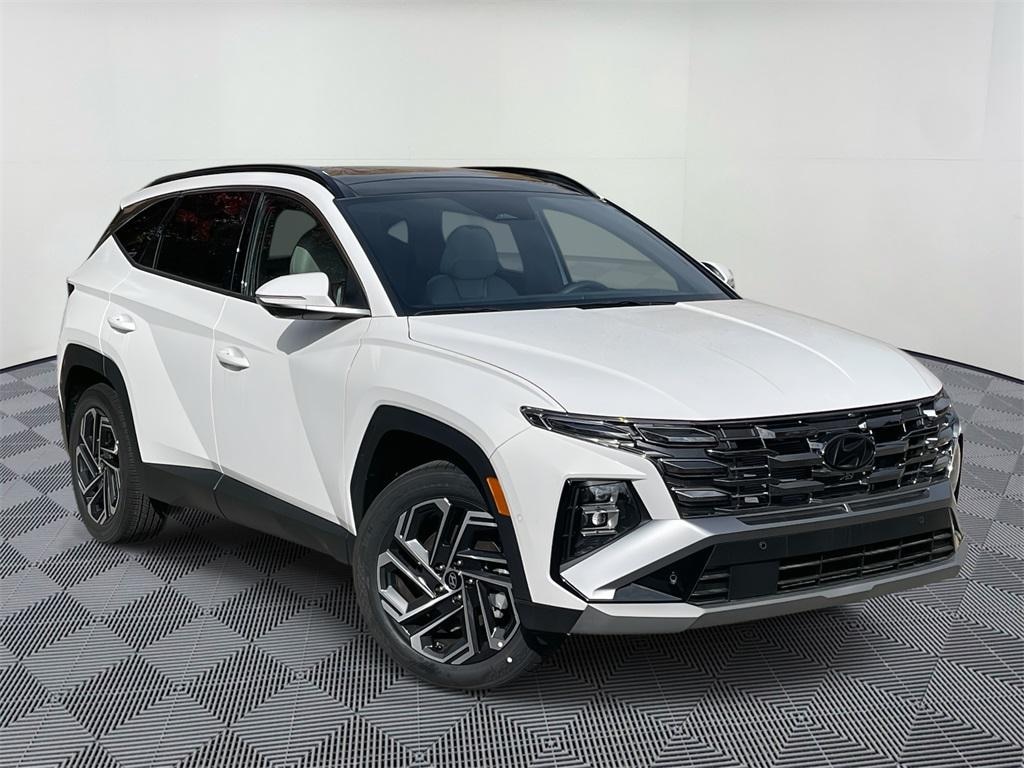 This Tucson is equipped with: Option Group 01, 19" Alloy Wheels, 4-Wheel Disc Brakes, 8 Speakers, ABS brakes, Air Conditioning, Alloy wheels, AM/FM radio: SiriusXM, Apple CarPlay & Android Auto, Auto High-beam Headlights, Auto-dimming Rear-View mirror, Automatic temperature control, Brake assist, Bumpers: body-color, Carpeted Floor Mats, Delay-off headlights, Driver door bin, Driver vanity mirror, Dual front impact airbags, Dual front side impact airbags, Electronic Stability Control, Emergency communication system: Bluelink+, First Aid Kit, Four wheel independent suspension, Front anti-roll bar, Front Bucket Seats, Front Center Armrest, Front dual zone A/C, Front reading lights, Fully automatic headlights, Garage door transmitter: HomeLink, Heads-Up Display, Heated & Ventilated Front Bucket Seats, Heated door mirrors, Heated front seats, Heated rear seats, Heated steering wheel, Illuminated entry, Leather steering wheel, Leather-Trimmed Seat Trim, Low tire pressure warning, Memory seat, Navigation System, Occupant sensing airbag, Outside temperature display, Overhead airbag, Overhead console, Panic alarm, Passenger door bin, Passenger vanity mirror, Power door mirrors, Power driver seat, Power Liftgate, Power moonroof, Power passenger seat, Power steering, Power windows, Radio data system, Radio: Bose Premium w/AM/FM/HD Audio System, Rain sensing wipers, Rear anti-roll bar, Rear reading lights, Rear seat center armrest, Rear side impact airbag, Rear window defroster, Rear window wiper, Remote keyless entry, Security system, Speed control, Split folding rear seat, Spoiler, Steering wheel mounted audio controls, Tachometer, Telescoping steering wheel, Tilt steering wheel, Traction control, Trip computer, Turn signal indicator mirrors, Variably intermittent wipers, and Ventilated front seats. Price includes: $3000 - Hyundai HMF Dealer Choice : $3000 discount and 5.49% APR for 24 months. $44.09 per $1000 financed. Available to well qualified buyers who finance through Hyundai Motor Finance. H704. Exp. 12/01/2025