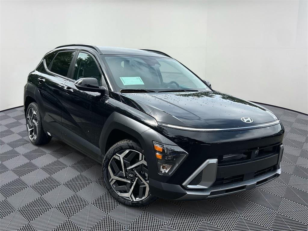 This Kona is equipped with: Option Group 01, 4-Wheel Disc Brakes, 6 Speakers, ABS brakes, Air Conditioning, Alloy wheels, AM/FM radio: SiriusXM, Apple CarPlay & Android Auto, Auto High-beam Headlights, Automatic temperature control, Brake assist, Bumpers: body-color, Cargo Blocks, Cargo Net, Cargo Tray, Carpeted Floor Mats, Delay-off headlights, Driver door bin, Driver vanity mirror, Dual front impact airbags, Dual front side impact airbags, Electronic Stability Control, Emergency communication system: Bluelink+, Exterior Parking Camera Rear, First Aid Kit, Front anti-roll bar, Front Bucket Seats, Front Center Armrest, Front dual zone A/C, Front reading lights, Front wheel independent suspension, Fully automatic headlights, H-Tex Seat Trim, Heated door mirrors, Heated Front Bucket Seats, Heated front seats, Illuminated entry, Leather steering wheel, Low tire pressure warning, Mud Guards, Occupant sensing airbag, Outside temperature display, Overhead airbag, Panic alarm, Passenger door bin, Passenger vanity mirror, Power door mirrors, Power driver seat, Power steering, Power windows, Radio: AM/FM/SiriusXM/HD Radio Audio System, Rear seat center armrest, Rear window defroster, Rear window wiper, Remote keyless entry, Road Assistance Kit, Security system, Severe Weather Kit, Speed control, Speed-sensing steering, Split folding rear seat, Spoiler, Steering wheel mounted audio controls, Tachometer, Telescoping steering wheel, Tilt steering wheel, Traction control, Trip computer, Turn signal indicator mirrors, Variably intermittent wipers, and Wheels: 19" x 7.5J Black/Silver Alloy. Price includes: $750 - Hyundai HMF Dealer Choice : $750 discount and 5.99% APR for 24 months. $44.32 per $1000 financed. Available to well qualified buyers who finance through Hyundai Motor Finance. H704. Exp. 11/03/2025