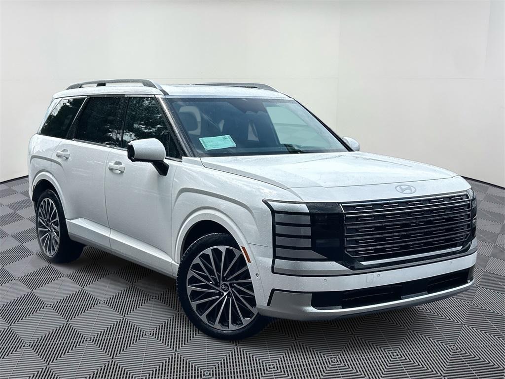 This Palisade is equipped with: Option Group 01, 14 Speakers, 3rd row seats: split-bench, 4-Wheel Disc Brakes, ABS brakes, Air Conditioning, Alloy wheels, AM/FM radio: SiriusXM, Apple CarPlay & Android Auto, Audio memory, Auto High-beam Headlights, Auto-dimming door mirrors, Auto-dimming Rear-View mirror, Auto-leveling suspension, Automatic temperature control, Brake assist, Bumpers: body-color, Cargo Net, Cargo Organizer, Cargo Tray, Carpeted Floor Mats, Compass, Delay-off headlights, Driver door bin, Driver vanity mirror, Dual front impact airbags, Dual front side impact airbags, Electronic Stability Control, Emergency communication system: Bluelink+, Exterior Parking Camera Rear, First Aid Kit, Four wheel independent suspension, Front anti-roll bar, Front Bucket Seats, Front Center Armrest, Front dual zone A/C, Front reading lights, Fully automatic headlights, Garage door transmitter: HomeLink, Genuine wood console insert, Genuine wood dashboard insert, Heads-Up Display, Heated & Ventilated Front Bucket Seats, Heated door mirrors, Heated front seats, Heated rear seats, Heated steering wheel, HVAC memory, Illuminated entry, Knee airbag, Leather steering wheel, Low tire pressure warning, Memory seat, Navigation System, Occupant sensing airbag, Outside temperature display, Overhead airbag, Overhead console, Panic alarm, Passenger door bin, Passenger vanity mirror, Power door mirrors, Power driver seat, Power Liftgate, Power moonroof, Power passenger seat, Power steering, Power windows, Premium Nappa Leather Seat Trim, Radio data system, Radio: Infotainment Navigation System, Rain sensing wipers, Rear air conditioning, Rear anti-roll bar, Rear audio controls, Rear reading lights, Rear side impact airbag, Rear window defroster, Rear window wiper, Reclining 3rd row seat, Remote keyless entry, Roadside Assistance Kit, Security system, Speed control, Split folding rear seat, Spoiler, Steering wheel mounted audio controls, Tachometer, Telescoping steering wheel, Tilt steering wheel, Traction control, Trip computer, Turn signal indicator mirrors, Variably intermittent wipers, Ventilated front seats, Ventilated rear seats, and Wheels: 21" x 8.5J Alloy. Price includes: $1250 - Hyundai HMF Dealer Choice : $1250 discount and 5.99% APR for 24 months. $44.32 per $1000 financed. Available to well qualified buyers who finance through Hyundai Motor Finance. H704. Exp. 11/03/2025