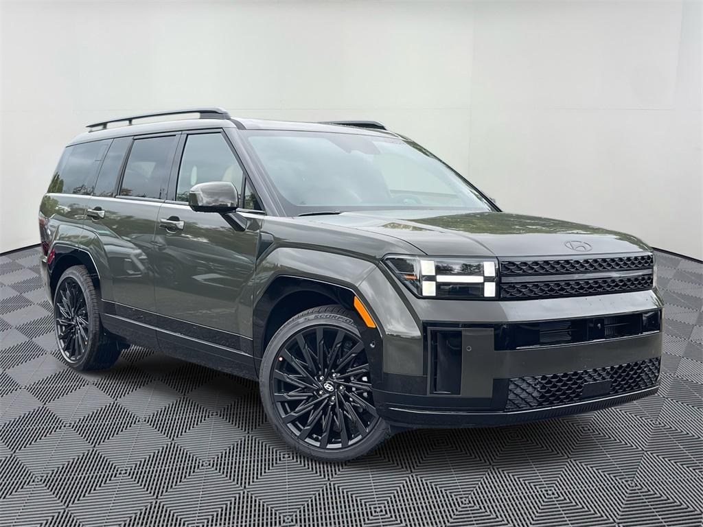 This Santa Fe is equipped with: Option Group 01, Tow & Go Package (Tow Hitch and Tow Hitch Ball Mount Kit), Pecan Brown Leather, 12 Speakers, 3rd row seats: bench, 4-Wheel Disc Brakes, ABS brakes, Air Conditioning, Alloy wheels, AM/FM radio: SiriusXM, Apple CarPlay & Android Auto, Auto High-beam Headlights, Auto-dimming Rear-View mirror, Automatic temperature control, Brake assist, Bumpers: body-color, Cargo Net, Cargo Tray, Carpeted Floor Mats, Delay-off headlights, Driver door bin, Driver vanity mirror, Dual front impact airbags, Dual front side impact airbags, Electronic Stability Control, Emergency communication system, Exterior Parking Camera Rear, First Aid Kit, Four wheel independent suspension, Front anti-roll bar, Front Bucket Seats, Front Center Armrest, Front dual zone A/C, Front reading lights, Fully automatic headlights, Garage door transmitter: HomeLink, Heads-Up Display, Heated & Ventilated Front Bucket Seats, Heated door mirrors, Heated front seats, Heated rear seats, Heated steering wheel, Illuminated entry, Knee airbag, Leather steering wheel, Low tire pressure warning, Memory seat, Navigation System, Occupant sensing airbag, Outside temperature display, Overhead airbag, Overhead console, Panic alarm, Passenger door bin, Passenger vanity mirror, Power door mirrors, Power driver seat, Power Liftgate, Power moonroof, Power passenger seat, Power steering, Power windows, Quilted Premium Nappa Leather Seat Trim, Radio: AM/FM/HD Bose Premium Audio System, Rain sensing wipers, Rear anti-roll bar, Rear side impact airbag, Rear window defroster, Rear window wiper, Remote keyless entry, Security system, Speed control, Speed-sensing steering, Split folding rear seat, Spoiler, Steering wheel mounted audio controls, Tachometer, Telescoping steering wheel, Tilt steering wheel, Traction control, Trip computer, Turn signal indicator mirrors, Variably intermittent wipers, Ventilated front seats, and Wheels: 21" x 8.5J Unique Dark Finish Alloy. Price includes: $2250 - Hyundai HMF Dealer Choice : $2250 discount and 5.99% APR for 24 months. $44.32 per $1000 financed. Available to well qualified buyers who finance through Hyundai Motor Finance. H704. Exp. 11/03/2025