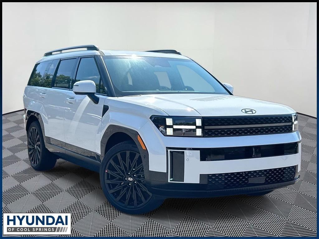 This Santa Fe is equipped with: Option Group 01, Pecan Brown Leather, 12 Speakers, 3rd row seats: bench, 4-Wheel Disc Brakes, ABS brakes, Air Conditioning, All Season Fitted Liners, Alloy wheels, AM/FM radio: SiriusXM, Apple CarPlay & Android Auto, Auto High-beam Headlights, Auto-dimming Rear-View mirror, Automatic temperature control, Brake assist, Bumpers: body-color, Cargo Blocks, Cargo Cover/Screen, Cargo Net, Cargo Tray, Carpeted Floor Mats, Delay-off headlights, Driver door bin, Driver vanity mirror, Dual front impact airbags, Dual front side impact airbags, Electronic Stability Control, Emergency communication system, Exterior Parking Camera Rear, First Aid Kit, Four wheel independent suspension, Front anti-roll bar, Front Bucket Seats, Front Center Armrest, Front dual zone A/C, Front reading lights, Fully automatic headlights, Garage door transmitter: HomeLink, Heads-Up Display, Heated & Ventilated Front Bucket Seats, Heated door mirrors, Heated front seats, Heated rear seats, Heated steering wheel, Illuminated entry, Knee airbag, Leather steering wheel, Low tire pressure warning, Memory seat, Mudguards, Navigation System, Occupant sensing airbag, Outside temperature display, Overhead airbag, Overhead console, Panic alarm, Passenger door bin, Passenger vanity mirror, Power door mirrors, Power driver seat, Power Liftgate, Power moonroof, Power passenger seat, Power steering, Power windows, Quilted Premium Nappa Leather Seat Trim, Radio: AM/FM/HD Bose Premium Audio System, Rain sensing wipers, Rear anti-roll bar, Rear side impact airbag, Rear window defroster, Rear window wiper, Remote keyless entry, Security system, Speed control, Speed-sensing steering, Split folding rear seat, Spoiler, Steering wheel mounted audio controls, Tachometer, Telescoping steering wheel, Tilt steering wheel, Traction control, Trip computer, Turn signal indicator mirrors, Variably intermittent wipers, Ventilated front seats, and Wheels: 21" x 8.5J Unique Dark Finish Alloy. Price includes: $2250 - Hyundai HMF Dealer Choice : $2250 discount and 5.99% APR for 24 months. $44.32 per $1000 financed. Available to well qualified buyers who finance through Hyundai Motor Finance. H704. Exp. 11/03/2025