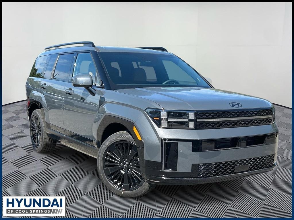 This Santa Fe Hybrid is equipped with: Option Group 01, 12 Speakers, 3rd row seats: bench, 4-Wheel Disc Brakes, ABS brakes, Air Conditioning, Alloy wheels, AM/FM radio: SiriusXM, Apple CarPlay & Android Auto, Auto High-beam Headlights, Auto-dimming Rear-View mirror, Automatic temperature control, Brake assist, Bumpers: body-color, Cargo Blocks, Cargo Cover/Screen, Cargo Net, Carpeted Floor Mats, Delay-off headlights, Driver door bin, Driver vanity mirror, Dual front impact airbags, Dual front side impact airbags, Electronic Stability Control, Emergency communication system, Exterior Parking Camera Rear, First Aid Kit, Four wheel independent suspension, Front anti-roll bar, Front Bucket Seats, Front Center Armrest, Front dual zone A/C, Front reading lights, Fully automatic headlights, Garage door transmitter: HomeLink, Heads-Up Display, Heated & Ventilated Front Bucket Seats, Heated door mirrors, Heated front seats, Heated rear seats, Heated steering wheel, Illuminated entry, Knee airbag, Leather steering wheel, Low tire pressure warning, Memory seat, Navigation System, Occupant sensing airbag, Outside temperature display, Overhead airbag, Overhead console, Panic alarm, Passenger door bin, Passenger vanity mirror, Power door mirrors, Power driver seat, Power Liftgate, Power moonroof, Power passenger seat, Power steering, Power windows, Quilted Premium Nappa Leather Seat Trim, Radio: AM/FM/HD Bose Premium Audio System, Rain sensing wipers, Rear anti-roll bar, Rear side impact airbag, Rear window defroster, Rear window wiper, Remote keyless entry, Roof Rack Crossbars, Security system, Severe Weather Kit, Speed control, Speed-sensing steering, Split folding rear seat, Spoiler, Steering wheel mounted audio controls, Tachometer, Telescoping steering wheel, Tilt steering wheel, Traction control, Trip computer, Turn signal indicator mirrors, Variably intermittent wipers, Ventilated front seats, and Wheels: 20" x 8.5J Unique Dark Finish Alloy. Price includes: $3000 - Hyundai HMF Dealer Choice : $3000 discount and 5.99% APR for 24 months. $44.32 per $1000 financed. Available to well qualified buyers who finance through Hyundai Motor Finance. H704. Exp. 11/03/2025