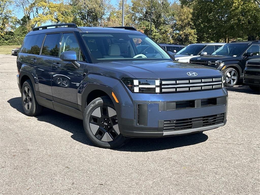 This Santa Fe Hybrid is equipped with: Option Group 01, I4, 18" x 7.5J Alloy Wheels, 3rd row seats: bench, 4-Wheel Disc Brakes, 6 Speakers, ABS brakes, Air Conditioning, Alloy wheels, AM/FM radio: SiriusXM, Apple CarPlay & Android Auto, Auto High-beam Headlights, Automatic temperature control, Brake assist, Bumpers: body-color, Cargo Blocks, Cargo Cover/Screen, Cargo Net, Cargo Tray, Carpeted Floor Mats, Delay-off headlights, Driver door bin, Driver vanity mirror, Dual front impact airbags, Dual front side impact airbags, Electronic Stability Control, Emergency communication system, Exterior Parking Camera Rear, First Aid Kit, Four wheel independent suspension, Front anti-roll bar, Front Bucket Seats, Front Center Armrest, Front dual zone A/C, Front reading lights, Fully automatic headlights, H-Tex Leatherette Seat Trim, Heated door mirrors, Heated Front Bucket Seats, Heated front seats, Illuminated entry, Knee airbag, Leather steering wheel, Low tire pressure warning, Mudguards, Occupant sensing airbag, Outside temperature display, Overhead airbag, Overhead console, Panic alarm, Passenger door bin, Passenger vanity mirror, Power door mirrors, Power driver seat, Power Liftgate, Power steering, Power windows, Radio: AM/FM/HD Display Audio, Rear anti-roll bar, Rear seat center armrest, Rear side impact airbag, Rear window defroster, Rear window wiper, Remote keyless entry, Roadside Assistance Kit, Security system, Speed control, Speed-sensing steering, Split folding rear seat, Spoiler, Steering wheel mounted audio controls, Tachometer, Telescoping steering wheel, Tilt steering wheel, Traction control, Trip computer, Turn signal indicator mirrors, and Variably intermittent wipers. Price includes: $4250 - Hyundai HMF Dealer Choice : $4250 discount and 5.49% APR for 24 months. $44.09 per $1000 financed. Available to well qualified buyers who finance through Hyundai Motor Finance. H704. Exp. 01/02/2026