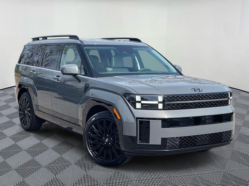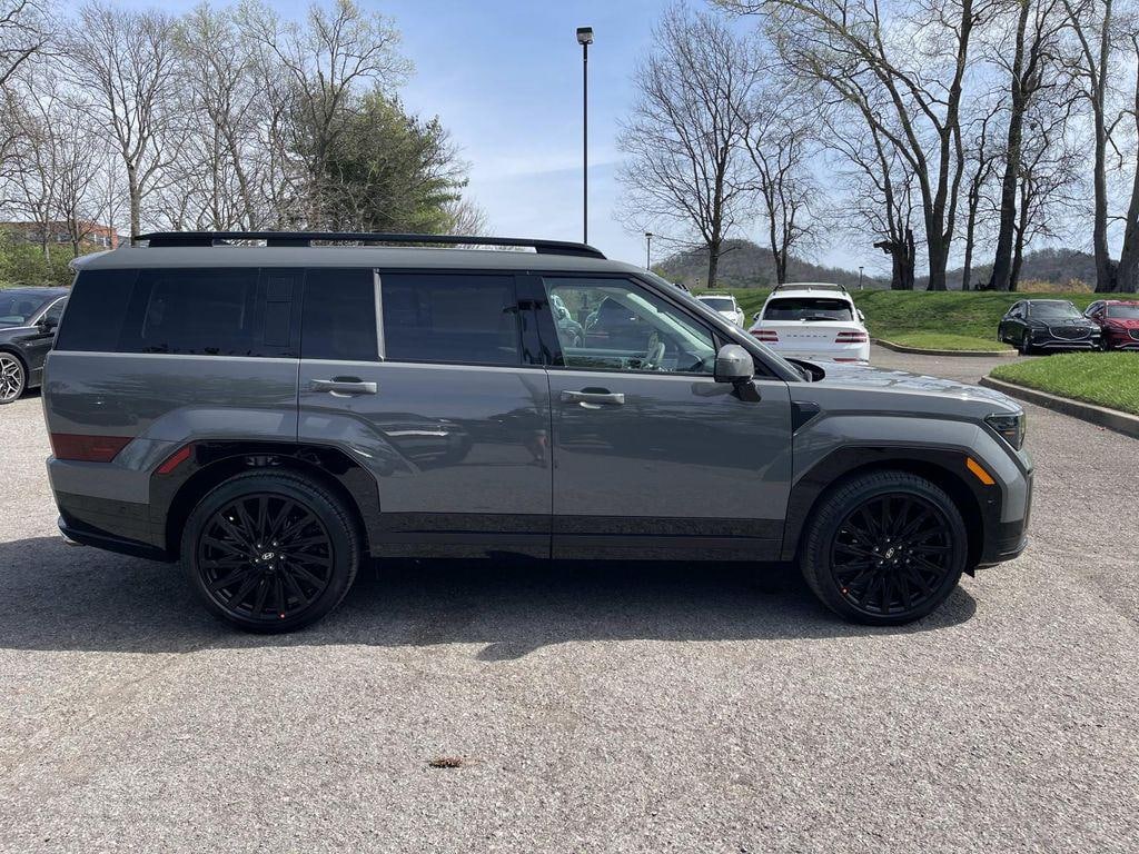 This Santa Fe is equipped with: Option Group 01, Gray Leather, 12 Speakers, 3rd row seats: bench, 4-Wheel Disc Brakes, ABS brakes, Air Conditioning, Alloy wheels, AM/FM radio: SiriusXM, Apple CarPlay & Android Auto, Auto High-beam Headlights, Auto-dimming Rear-View mirror, Automatic temperature control, Brake assist, Bumpers: body-color, Cargo Cover/Screen, Cargo Net, Cargo Tray, Carpeted Floor Mats, Delay-off headlights, Driver door bin, Driver vanity mirror, Dual front impact airbags, Dual front side impact airbags, Electronic Stability Control, Emergency communication system, Exterior Parking Camera Rear, First Aid Kit, Four wheel independent suspension, Front anti-roll bar, Front Bucket Seats, Front Center Armrest, Front dual zone A/C, Front reading lights, Fully automatic headlights, Garage door transmitter: HomeLink, Heads-Up Display, Heated and Ventilated Front Bucket Seats, Heated door mirrors, Heated front seats, Heated rear seats, Heated steering wheel, Illuminated entry, Knee airbag, Leather steering wheel, Low tire pressure warning, Memory seat, Navigation System, Occupant sensing airbag, Outside temperature display, Overhead airbag, Overhead console, Panic alarm, Passenger door bin, Passenger vanity mirror, Power door mirrors, Power driver seat, Power Liftgate, Power moonroof, Power passenger seat, Power steering, Power windows, Quilted Premium Nappa Leather Seat Trim, Radio: AM/FM/HD Bose Premium Audio System, Rain sensing wipers, Rear anti-roll bar, Rear side impact airbag, Rear window defroster, Rear window wiper, Remote keyless entry, Roof Rack Crossbars, Security system, Speed control, Speed-sensing steering, Split folding rear seat, Spoiler, Steering wheel mounted audio controls, Tachometer, Telescoping steering wheel, Tilt steering wheel, Traction control, Trip computer, Turn signal indicator mirrors, Variably intermittent wipers, Ventilated front seats, and Wheels: 21" x 8.5J Unique Dark Finish Alloy. Price includes: $2200 - Retail Bonus Cash. Exp. 04/30/2026