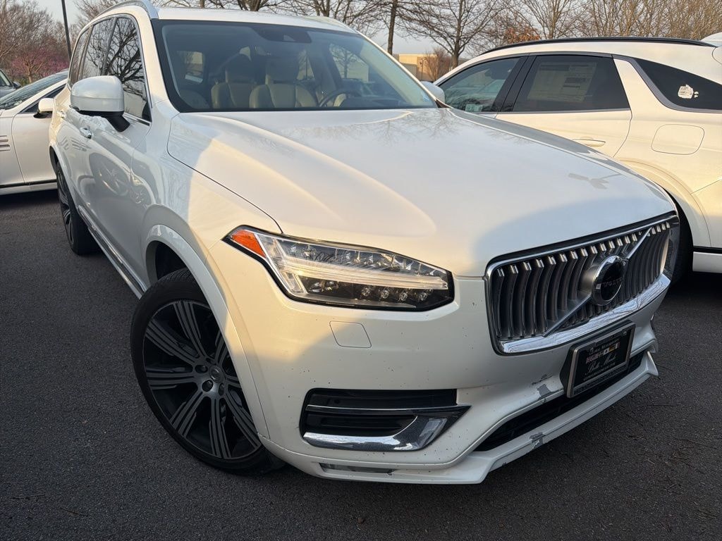 The full list of features includes: AWD, Blond Leather, 14 Speakers, 3rd row seats: bucket, 4-Corner Air Suspension w/Four-C Active Chassis, 4-Wheel Disc Brakes, ABS brakes, Air Conditioning, Alloy wheels, AM/FM radio: SiriusXM, Anti-whiplash front head restraints, Apple CarPlay/Android Auto, Auto High-beam Headlights, Auto-dimming door mirrors, Auto-dimming Rear-View mirror, Automatic temperature control, Bodyside moldings, Brake assist, Bumpers: body-color, Delay-off headlights, Driver door bin, Driver vanity mirror, Dual front impact airbags, Dual front side impact airbags, Electronic Stability Control, Emergency communication system: Volvo On-Call, Exterior Parking Camera Rear, Four wheel independent suspension, Front anti-roll bar, Front Bucket Seats, Front Center Armrest w/Storage, Front dual zone A/C, Front fog lights, Front reading lights, Fully automatic headlights, Garage door transmitter: HomeLink, Genuine wood dashboard insert, Genuine wood door panel insert, harman/kardon® Speakers, Heated & Ventilated Front Comfort Seats, Heated door mirrors, Heated front seats, Illuminated entry, Knee airbag, Leather Shift Knob, Low tire pressure warning, Memory seat, Nappa Leather Seating Surfaces, Navigation System, Occupant sensing airbag, Outside temperature display, Overhead airbag, Panic alarm, Passenger door bin, Passenger vanity mirror, Power door mirrors, Power driver seat, Power Liftgate, Power moonroof, Power passenger seat, Power steering, Power windows, Premium audio system: Sensus Connect, Radio data system, Radio: harman/kardon Premium Sound w/Sensus Nav Pro, Rain sensing wipers, Rear air conditioning, Rear anti-roll bar, Rear dual zone A/C, Rear fog lights, Rear reading lights, Rear window defroster, Rear window wiper, Remote keyless entry, Roof rack: rails only, Security system, Speed control, Speed-sensing steering, Split folding rear seat, Spoiler, Steering wheel mounted audio controls, Tachometer, Telescoping steering wheel, Tilt steering wheel, Traction control, Trip computer, Turn signal indicator mirrors, Variably intermittent wipers, Ventilated front seats, Wheels: 20" 10-Spoke Black Diamond Cut Alloy, and Wheels: 21" 8-Multi Spoke Black Diamond-Cut Alloy.